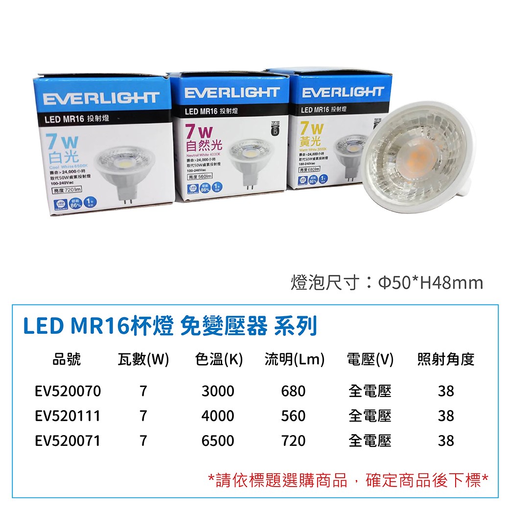 > EVERLIGHT億光 LED 7W 4000K 自然光 38度 全電壓 MR16 杯燈 燈泡_EV520111